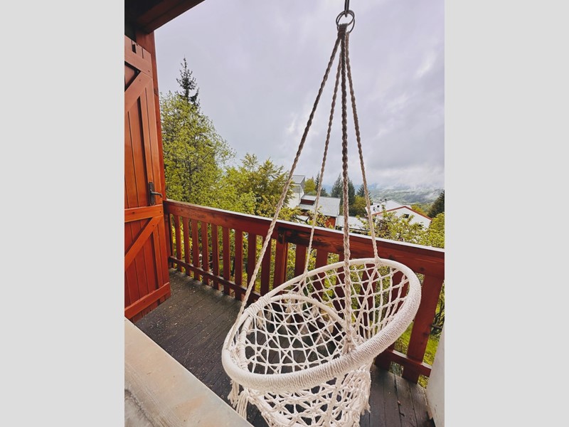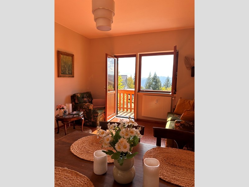L'appartamento è dotato di ingresso, salotto con stufa a legna e ampia balconata da cui si può ammirare un incantevole tramonto tra le montagne, cucina, due camere da letto ed un bagno.