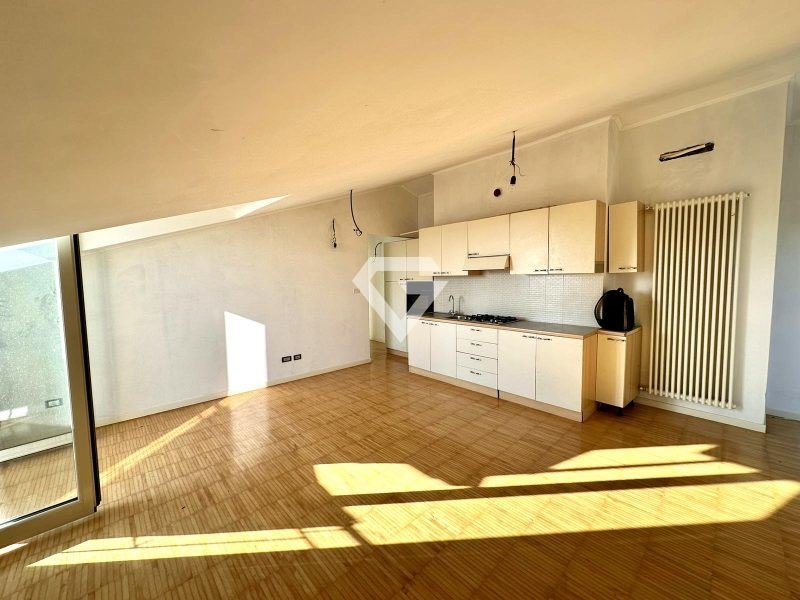 L' alloggio, ubicato al quarto ed ultimo piano, è così disposto: ingresso su ampia zona living con balcone, balconcino e cucina a vista; disimpegno, bagno finestrato e camera matrimoniale con ulteriore balconcino.