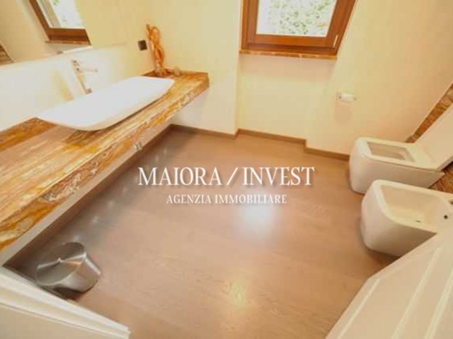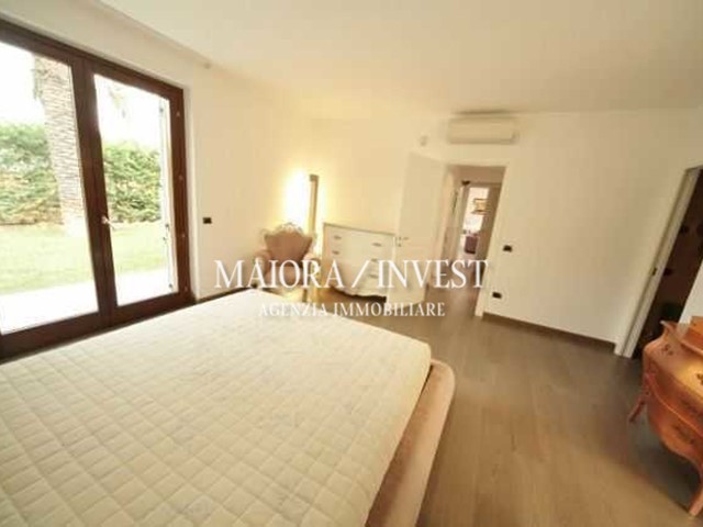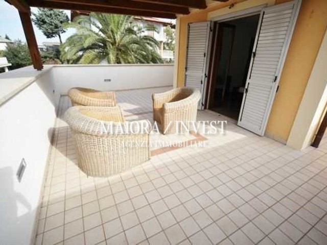 SAN BENEDETTO DEL TRONTO - A soli 100 metri dalla spiaggia, esclusiva e moderna villa unifamiliare costruita nel 2008 e libera su quattro lati. L'abitazione è disposta su tre livelli ed è circondata da un giardino esclusivo di circa 390 mq completamente recintato con sistema di irrigazione computerizzato. L'immobile ha due entrate indipendenti di cui una pedonale e l'altra carrabile. Il piano terra, di circa 120 mq, ha accesso da un portone blindato con scheda DR con autochiusura ed è composto da ampio soggiorno con camino e stufa a pellet, cucina a vista (possibilità di creare la cucina abitabile), disimpegno, bagno principale con doccia, due camere di cui una doppia e una matrimoniale con bagno privato e cabina armadio. Ogni ambiente dispone di uscita sul giardino. Il primo piano è collegato al piano terra da una comoda scalinata in legno, ha una superficie di circa 40 mq ed è composto da un piccolo soggiorno, una camera matrimoniale e un bagno con vasca oltre ad un porticato di circa 80 mq. Completano la proprietà un piano interrato di circa 90 mq con accesso dal giardino composto da ampio rustico con cucina, camino e barbecue e un bagno e un comodissimo garage di mq 46. L'immobile dispone di ottime rifiniture, impianto di allarme, condizionatore in tutti gli ambienti e impianto fotovoltaico. Ottimo investimento sia come residenziale sia turistico vista la vicinanza al mare. Codice di riferimento 1307. Agenzia Immobiliare MAIORA/INVEST.