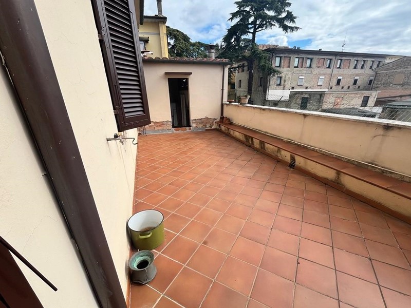 ESCLUSIVA - L'Agenzia Immobiliare Cinelli propone la vendita di un appartamento in zona centrale con terrazza abitabile e ingresso indipendente. L'appartamento ha ingresso indipendente, al piano terra troviamo un locale lavanderia, un ripostiglio, un bagno con antibagno , al piano primo l'appartamento è composto da un disimpegno, cucinotto-tinello , ripostiglio, bagno, due camere matrimoniali e ampia terrazza abitabile, Completa l'appartamento un resede esclusivo al piano terra per posto auto ed un garage di ca. mq. 45.