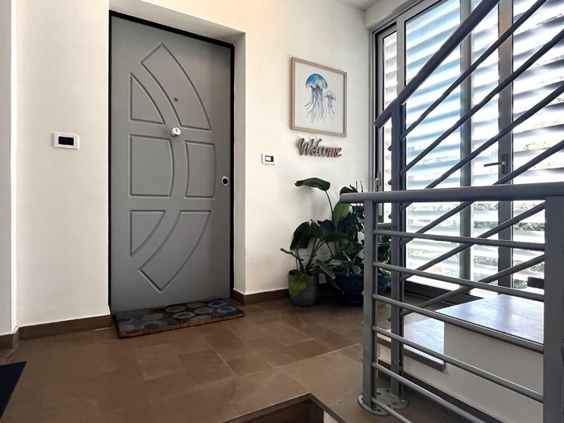 Proponiamo in vendita un moderno e confortevole appartamento situato in un signorile condominio costruito nel 2011. Questa proprietà esclusiva, situata al primo piano e servita da ascensore, offre un ambiente luminoso e accogliente grazie alla sua eccellente esposizione e alla grande vetrata che si apre sulla terrazza angolare. La terrazza, pranzabile, offre una splendida vista sul mare e sulla rigogliosa vegetazione mediterranea, rendendo ogni momento trascorso all'aperto un'esperienza unica. L'ingresso si apre direttamente sulla zona giorno, caratterizzata da un angolo cottura a vista di marca Elmar, una zona pranzo e un'area relax con divano. La zona notte comprende una spaziosa camera matrimoniale e un bagno con doccia e finestra. Ogni dettaglio dell'abitazione è stato curato con attenzione, garantendo una condizione impeccabile che non necessita di alcun intervento. L'appartamento è dotato di impianto di riscaldamento autonomo e impianto di climatizzazione, porta blindata, infissi in alluminio, avvolgibili elettrici, zanzariere e pilozzino sulla terrazza. La presenza di un box auto, chiuso da pareti ma senza bascula, accessibile tramite cancello elettrico, aggiunge ulteriore valore alla proprietà, particolarmente importante in una zona turistica come questa. Si tratta sicuramente di un immobile esclusivo, grazie alla posizione privilegiata vicinissima al mare, alle eccellenti rifiniture e al signorile condominio. Non perdere questa opportunità unica, contattaci subito per fissare una visita. Classe energetica: E - Rif. 1561 Per ulteriori informazioni e per prenotare una visita, non esitare a contattarci. Saremo lieti di assisterti in ogni fase dell'acquisto.