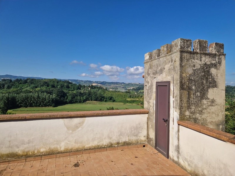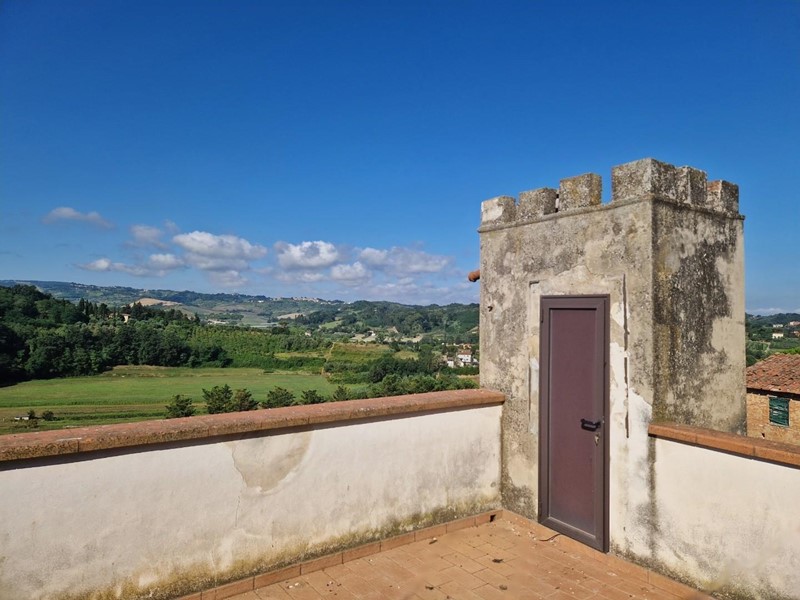 Nel comune di Terricciola, nel piccolo e grazioso borgo di SOIANELLA , l'agenzia Immobiliare Il Sole, propone IN VENDITA IN ESCLUSIVA un ampio terra tetto svolto su tre piani collegati da scala interna, al piano terra troviamo locali attualmente adibiti a magazzino caratterizzati da stupende volte; al piano primo troviamo doppio soggiorno di cui uno con bellissimo camino e con accesso alla terrazza da cui si può ammirare uno stupendo panorama sulle colline pisane, cucina-pranzo con camino, collegata anch'essa alla terrazza, disimpegno, camera matrimoniale e bagno; al piano secondo troviamo tre ampi locali/soffitte con travi a vista e stupenda terrazza panoramica, l'immobile ha una bellissima e particolare torretta.
