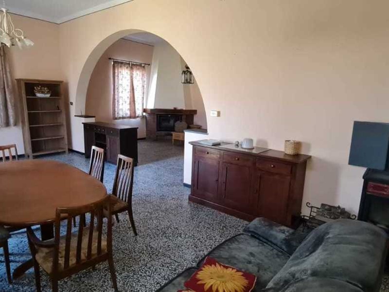 L'immobile, disposto su due livelli catastalmente abitabili, si compone da: al piano terreno un ampio salone con camino, sala da pranzo, ripostiglio e servizio della zona giorno. Al piano primo ed ultimo collegato internamente da scala giorno troviamo cinque camere da letto ampie e matrimoniali, una cucina e servizio della zona notte. Le due camere con affaccio sul fronte dell'immobile fanno accedere ad un ampia terrazza con vista sulla vallata.
