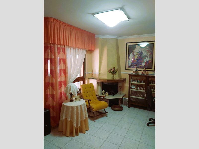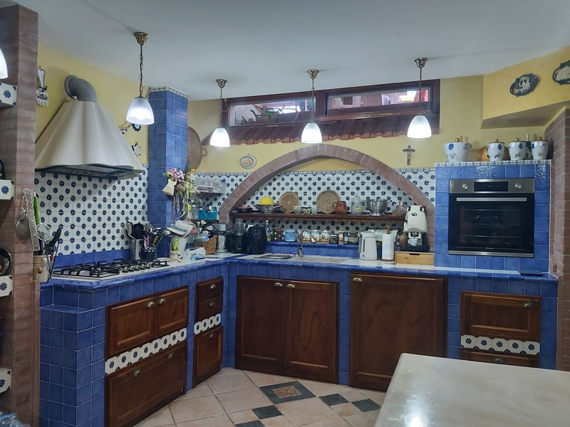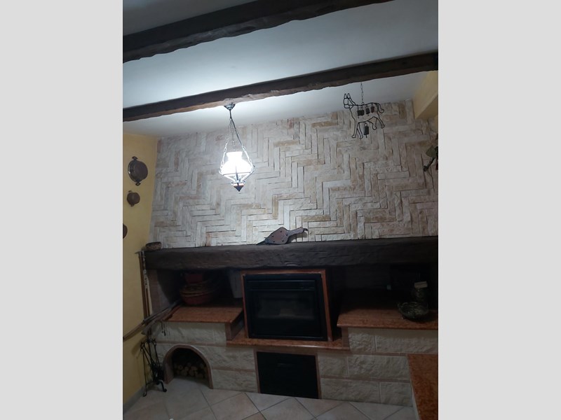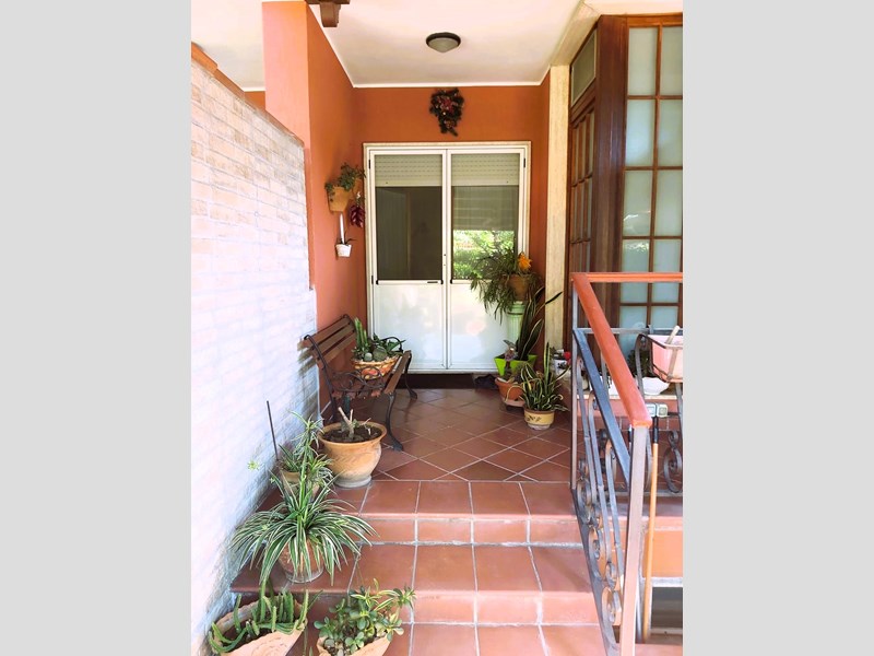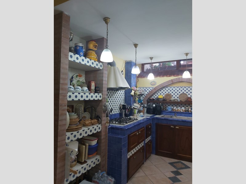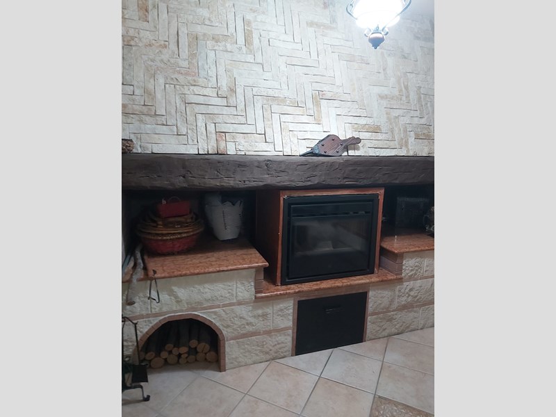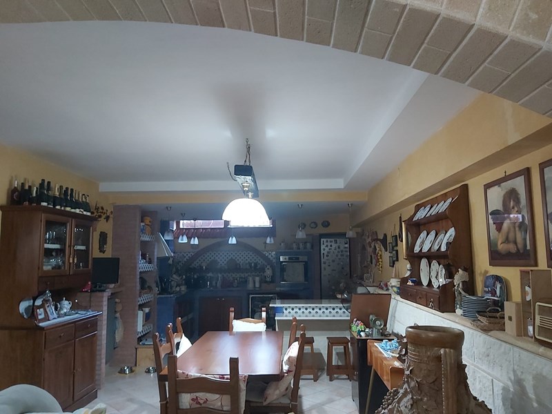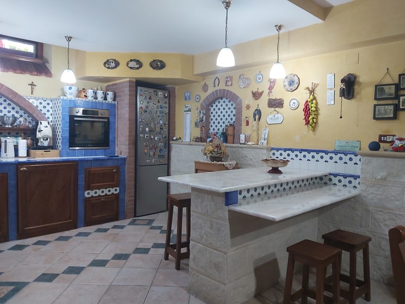 L'immobile, al piano terra / rialzato, è dotato di un doppio ingresso: dall'ingresso principale si accede, attraverso un patio esterno, direttamente al salone di ampia metratura dotato di camino che ci conduce alla cucina. Quest'ultima dispone del secondo accesso sulla veranda. Completa il piano rialzato un bagno finestrato .