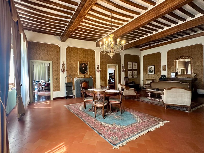 San Ginese - Capannori Rif. IA6279 in splendida posizione semicollinare facilmente raggiungibile; prestigiosa Villa di epoca Borbonica (1860) fortunatamente conservata nelle sue caratteristiche originarie; Composta al piano nobile (primo con altezza oltre 5 metri) con accesso sia da scla esterna che da scala interna  ampio e sontuoso salone, tre enormi camere e spogliatoio, due bagni, sala da pranzo e cucina abitabile (con portafinestra e accesso a una zona esterna ideale per pranzare o cenare all'aperto;  al piano terra con due ingressi indipendenti mà collegato al piano primo da scala interna ingresso, soggiorno, ampia cucina abitabile, disimpegno e bagno; inoltre sempre al piano terra due garage, uno molto grande di c.ca 50 metri  collegato anche dal disimpegno (si può realizzare una camera di completamento per il piano terra), ed un'altro più piccolo di c.ca 20 metri; Corredata da giardino e terreno privati di mq. 14.950; Luminosissima con ottima esposizione solare; importante tetto già rifatto completamente come visibile dall'enorme soffitta con accesso da regolare scala interna e con altezza interna importante (attualmente al grezzo),  per motivi di privacy l'indirizzo non è esatto