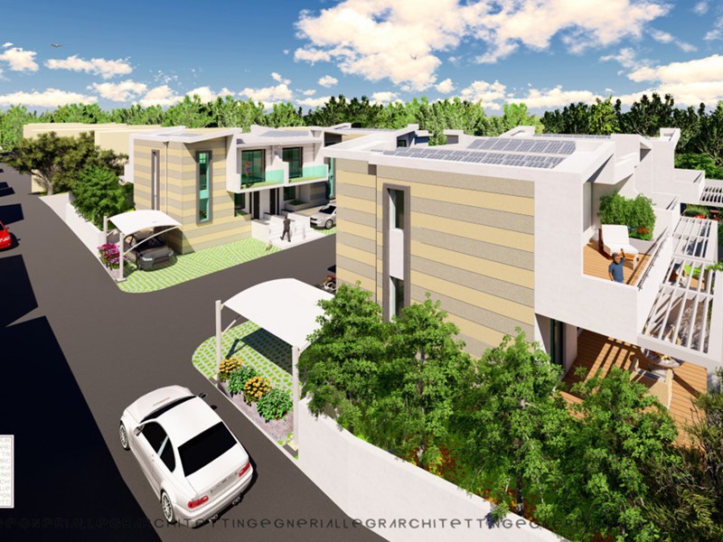 Il complesso residenziale si compone di 2 Ville Singole e 4 ville Bifamiliari sviluppate su 2 elevazioni, opportunamente ed architettonicamente finite e rifinite, così come meglio visibili nel progetto, dotate di ampi spazi verdi e parcheggio privato.