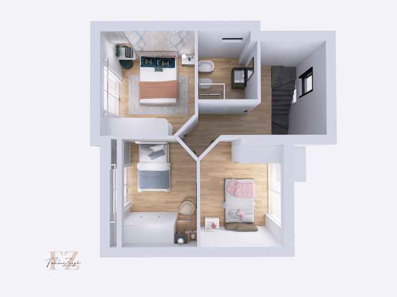 Nello specifico le unità bifamiliari, saranno composte al piano terra da soggiorno/cucina openspace e bagno, mentre nella zona notte posta al piano superiore composta da 3 camere da letto più bagno.