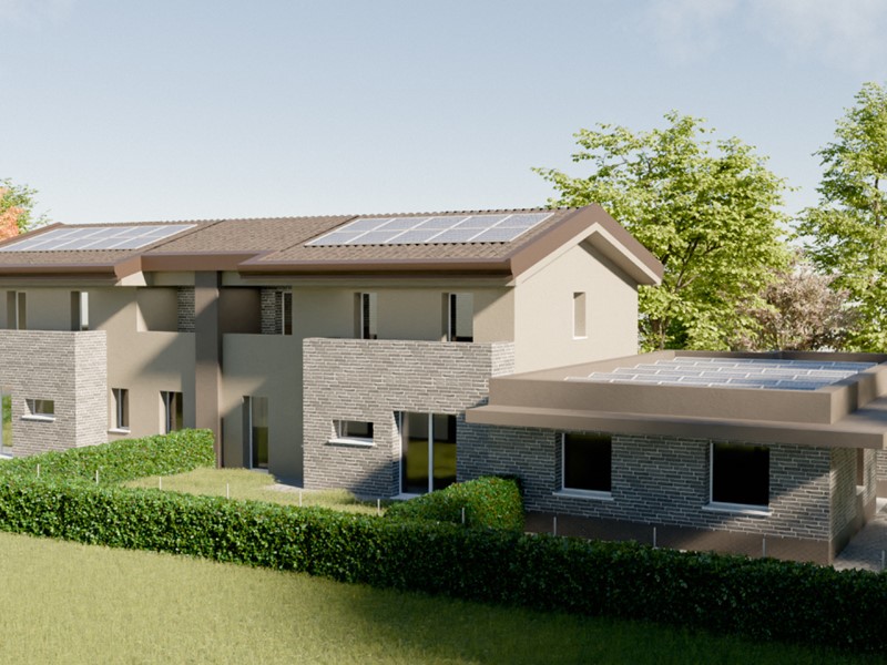 Il giardino è sui 3 lati. Classe Energetica è A4 con fotovoltaico da 4,5 Kw.