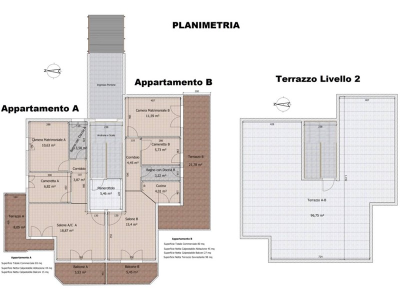 Scalea Zona Monticello, proponiamo in vendita due Appartamenti con Balconi e Terrazzo soprastante e gradevole Vista Mare. Gli appartamenti con una superfice commerciale totale di 145 mq, sono situati ad attico di una palazzina ma con portone di accesso a livello. Sono composti ognuno di 2 Camere da Letto, Salone, Cucina, Bagno e 2 Balconi. Gli Immobili sono situati in posizione panoramica e con splendida vista mare, grande luminosità e ariosità, a pochi passi dal centro di Scalea raggiungibile anche a piedi. Le Case si presentano in buone condizioni e tutti gli impianti funzionanti, arricchiti di recente da condizionatori e infissi e vetrate. La Proprietà comprende anche un grande terrazzo di 97 mq posto sopra e con entrata esclusiva ed un grande Box Auto di 51mq situato nel condominio nella via prospicente. L'immobile è visionabile anche attraverso visita virtuale con foto a 360° rif 31841