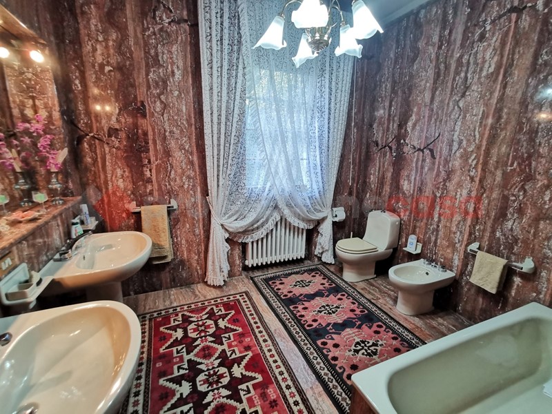-Pavimentazioni della zona giorno in marmo onice rosso spagnolo, in parquet di olivo nella zona notte e ceramica con trama a finto tessuto firmata Valentino nella taverna.