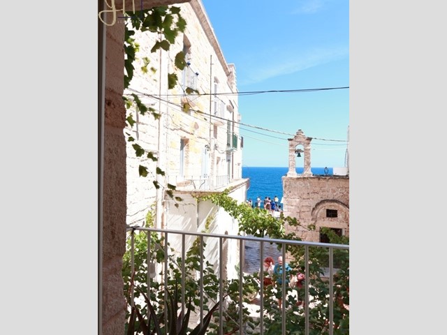 Il fiore all’occhiello di questa incantevole abitazione è una finestra che si apre su un panorama mozzafiato: le bianche vie del centro storico e lo scintillio del mare che si perde all'orizzonte.