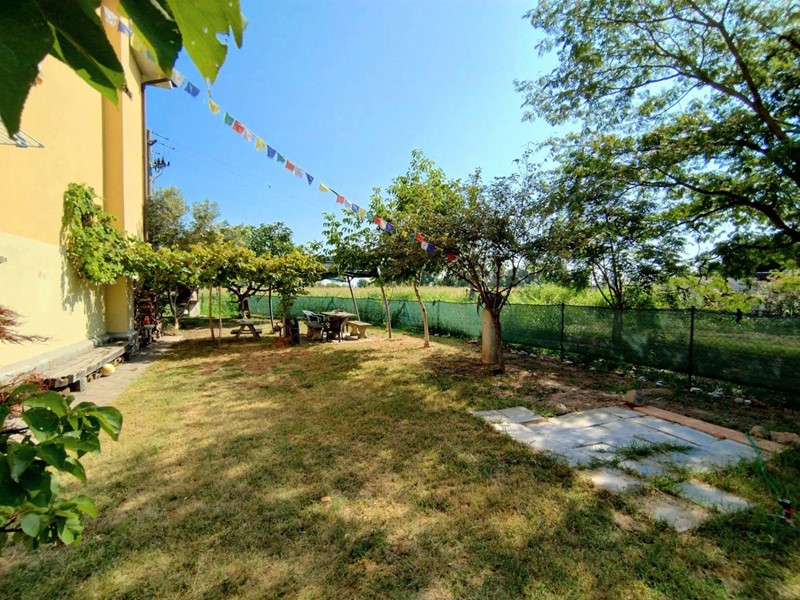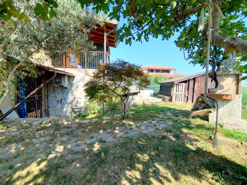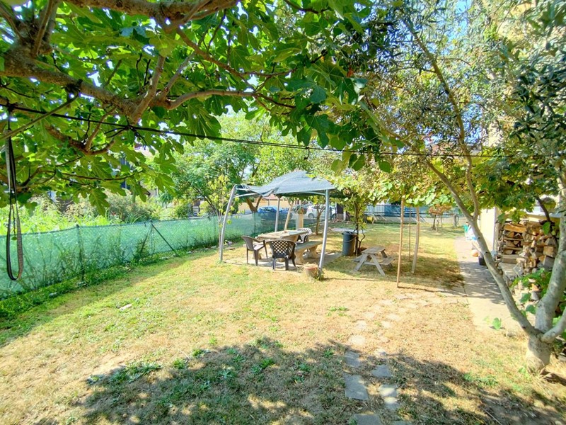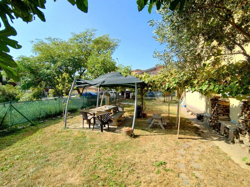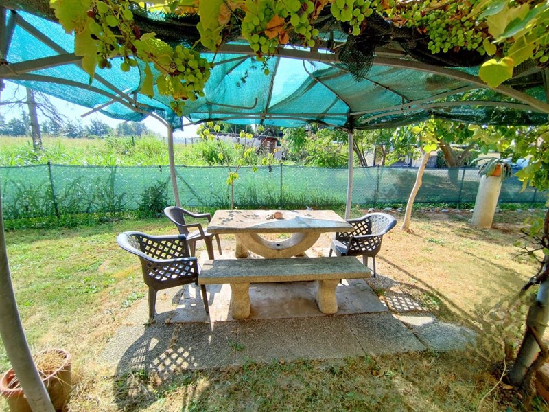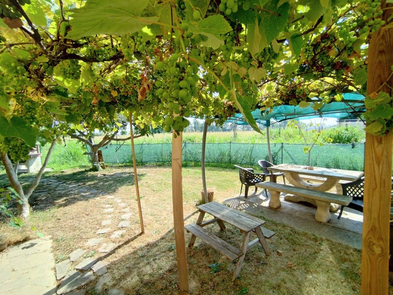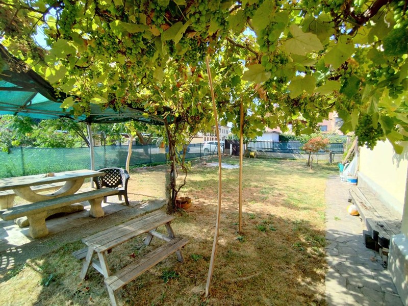 La villa ci accoglie subito in un bellissimo giardino che circonda la proprietà su tre lati, offrendo un angolo di verde privato e ben curato che esalta la bellezza e la tranquillità della casa, con un bellissimo pergolato abbellito da un intreccio di alberi di vite, un barbecue e tantissimo spazio da personalizzare a proprio piacimento dove creare una piscina o qualsiasi altra cosa voi desideriate.