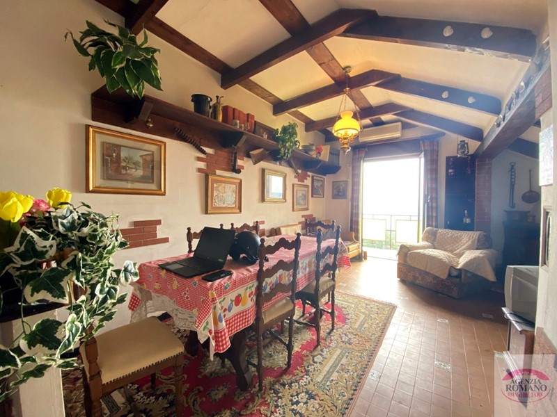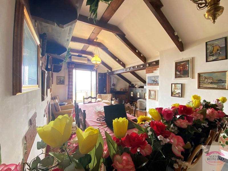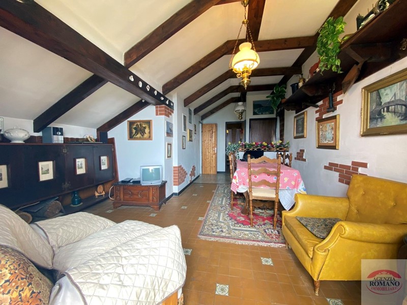 Panoramicissimo attico mansardato nel centro di Moretti con tutti i servizi locali raggiungibili a piedi in palazzina ordinata e senza spese condominiali. Questo alloggio occupa tutto il terzo e ultimo piano del caseggiato e spicca per la balconata affacciata verso il Monviso. Salone con caminetto, cucinotta, camera matrimoniale, singola e bagno oltre a ripostigli nella parte più spiovente del tetto che lasciano ancora spazio per alcune personalizzazioni. A circa 30 minuti dal mare di Albisola questo immoblile tra le colline è subito abitabile per tutto l'anno disponendo di due pompe di calore caldofreddo oltre al camino dotato di dispositivo di ventilazione e due rilevatori monossido. Viene qui proposto arredato e attrezzato se non diversamente richiesto