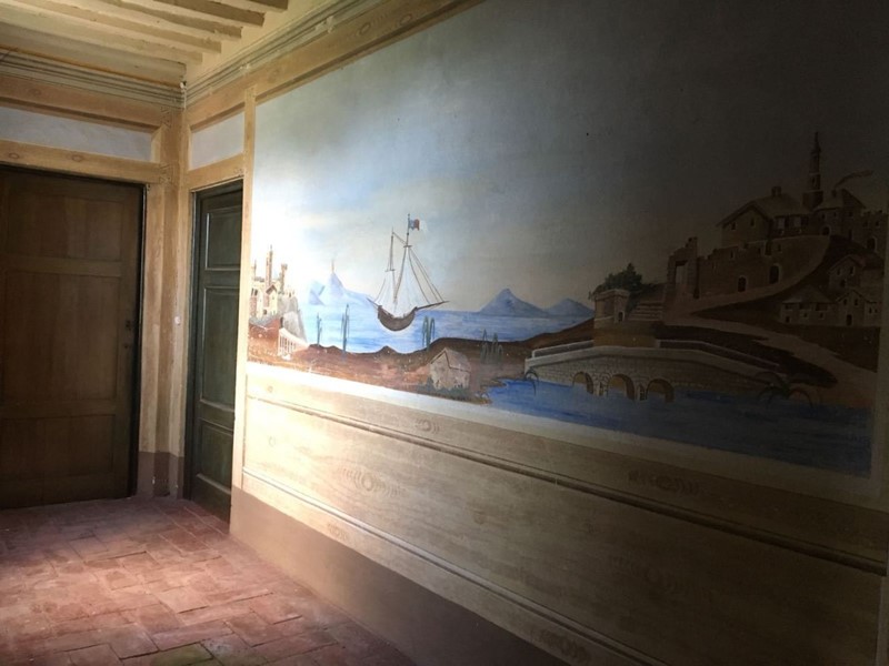 Piano primo Ingresso con affreschi, disimpegno tre camere ed 1 bagno