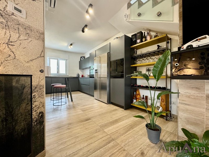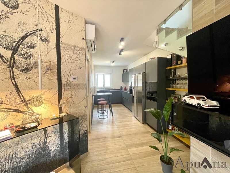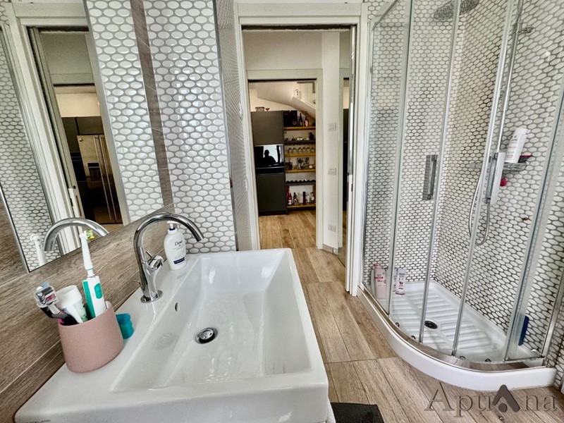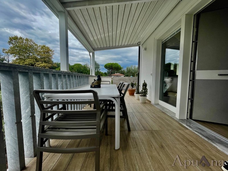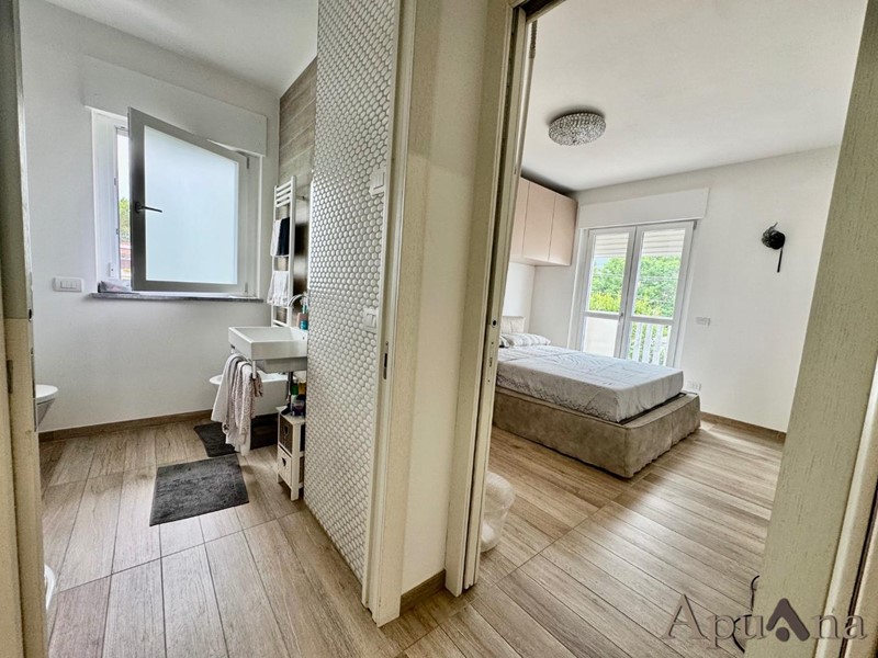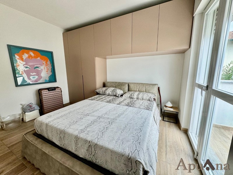Cinquale - In elegante complesso di recente costruzione si vende appartamento duplex con ingresso indipendente. Con accesso da piccola resede a piano terra arriviamo sull'ampia terrazza vivibile, internamente troviamo soggiorno con zona cottura, camera, bagno e balcone al piano principale; al piano superiore mansardato ampio open space con balcone con possibilità di ricavare due camere con bagno o ampia suite con bagno privato e cabina armadi. L'immobile, frutto di una radicale ristrutturazione è dotato di climatizzazione, impianto riscaldamento a pavimento, infissi di ultima generazione e viene ceduto completamente arredato (come da foto). A completamento due posti auto scoperti in area condominiale protetta.