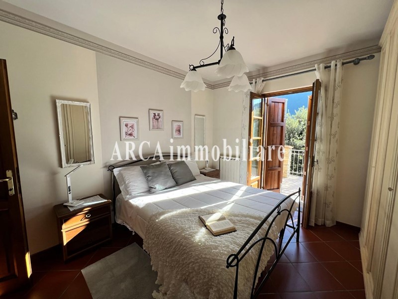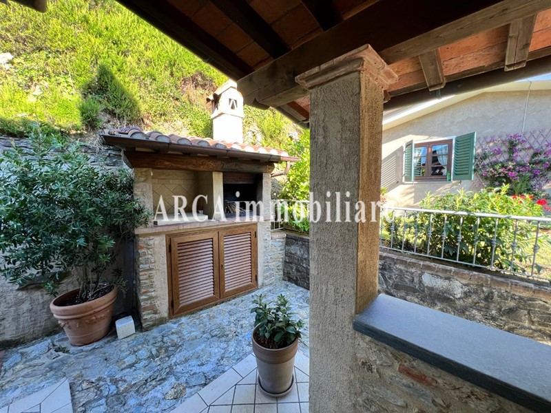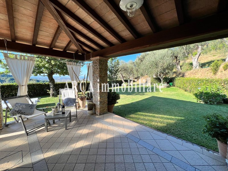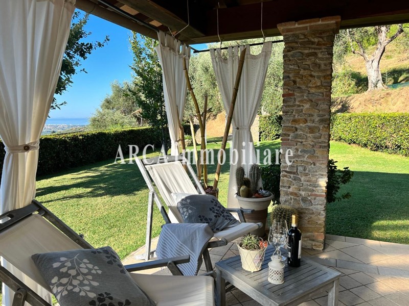 Pietrasanta in prima collina con bellissima vista mare, villa singola in ottimo stato di manutenzione composta da: portico-pergolato, cucinotto, pranzo soggiorno con camino, 2 camere, bagno e grande terrazza al piano terra e camera mansardata al piano superiore. Bagno e barbecue. Grande cantina -garage al piano terra con accesso anche interno. Dipendenza abitativa con bagno. Terreno in parte olivato e giardino. Posizione significativa, con strada asfaltata che arriva e finisce alla proprietà, senza disturbi o tralicci alta tensione. Possibilità di realizzare una piscina.
