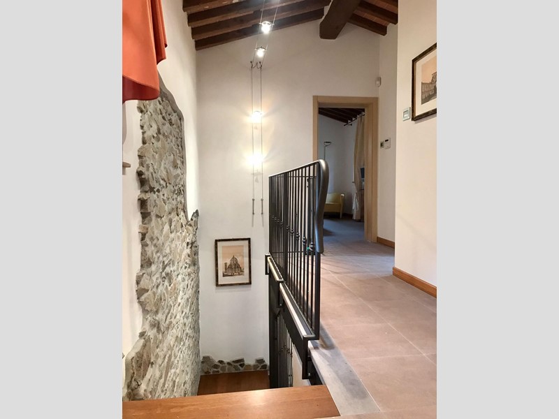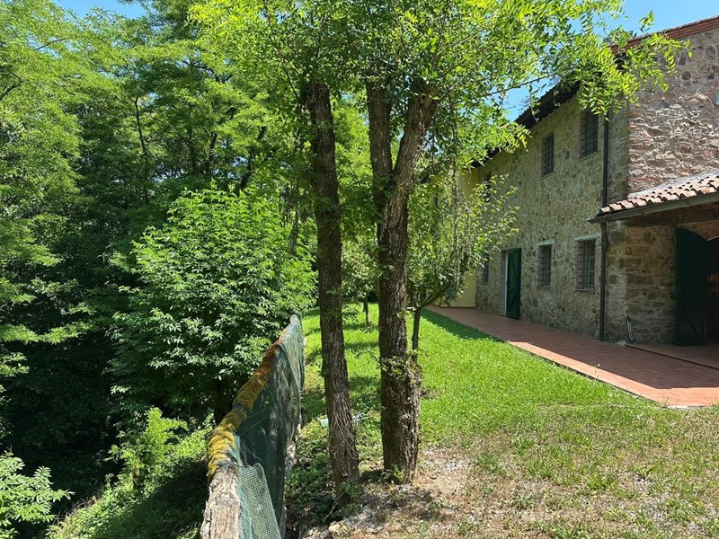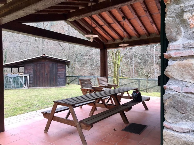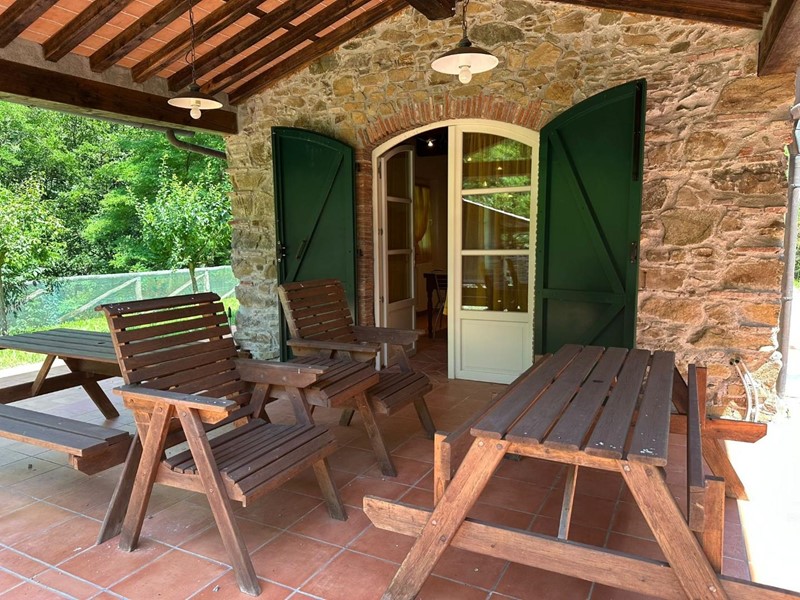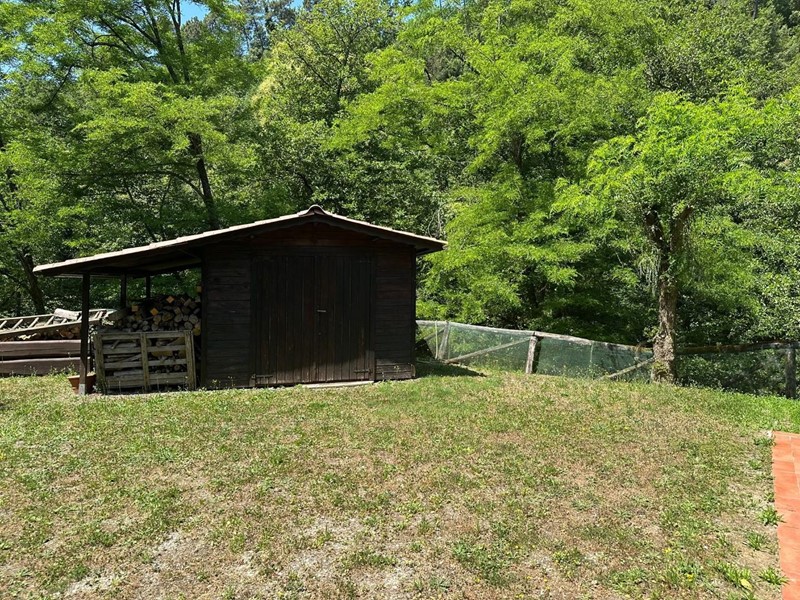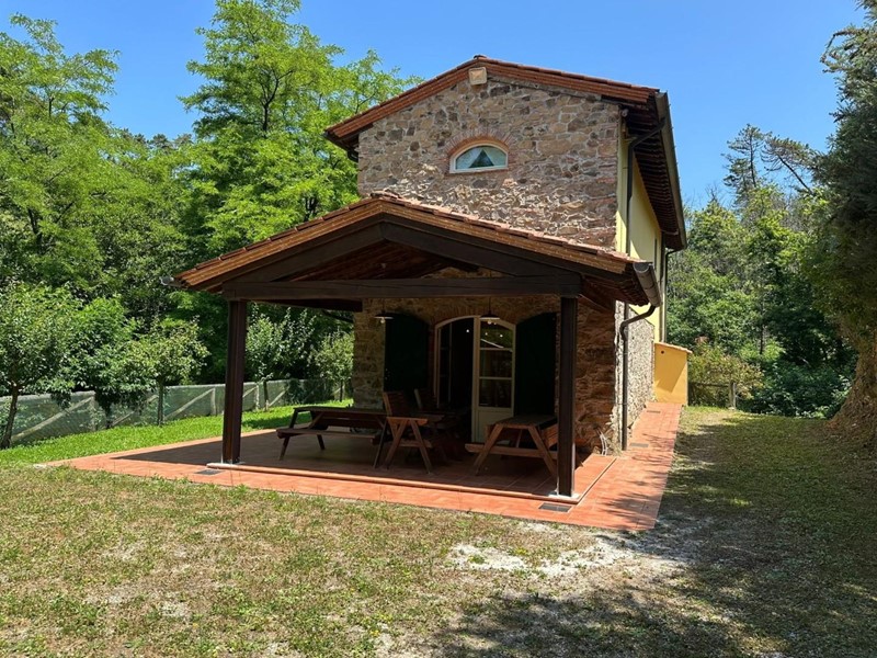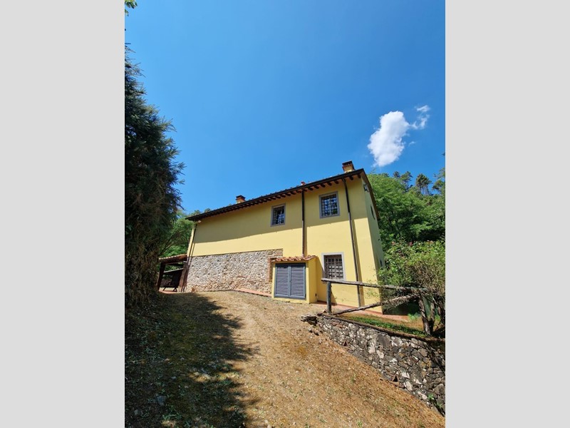 VALPROMARO, A 20 Km dalle spiagge della Versilia e a 22 km dal centro di Lucca, in posizione isolata nel bosco, proponiamo in vendita rustico indipendente di 120 mq su due livelli, completamente ristrutturato, in stile rustico, composto al piano terra da: ingresso/salottino, soggiorno con caminetto (con eventualità di ricavare una terza camera), ampia cucina abitabile in muratura con altro ingresso, ripostiglio e bagno con doccia; da mezzo scala rivestita in legno si accede al primo piano composto da disimpegno, una camera matrimoniale, una camera doppia ed un bagno con doccia e vasca idromassaggio. A corredo dell'abitazione bel porticato con possibilità di essere chiuso per ricavare un ulteriore spazio abitativo, piccolo annesso (da ricostruire), resede per posti auto con giardino adiacente su quattro lati e terreno di complessivi 5000 mq adibiti a bosco. L'immobile è rifinito in stile rustico con travicelli e mezzane a vista, pavimenti in cotto e parquet, e dotato di impianto di allarme, di irrigazione e satellitare.