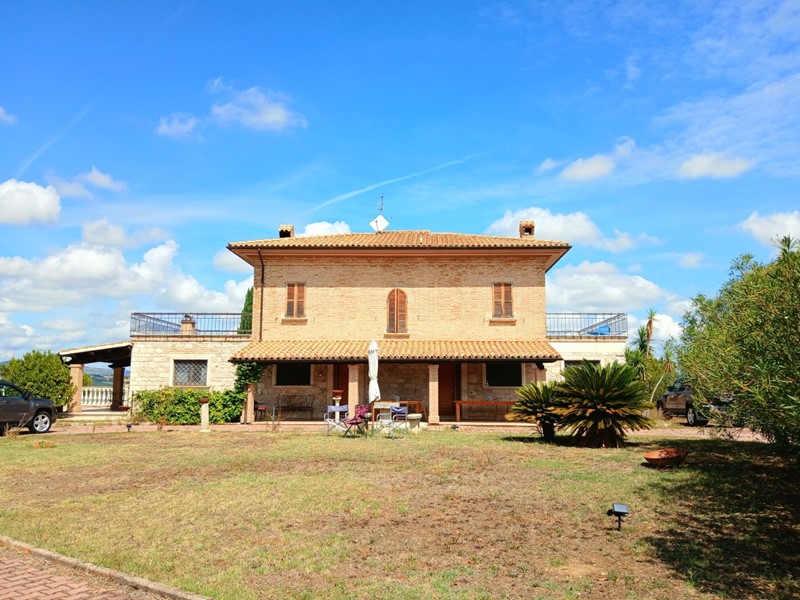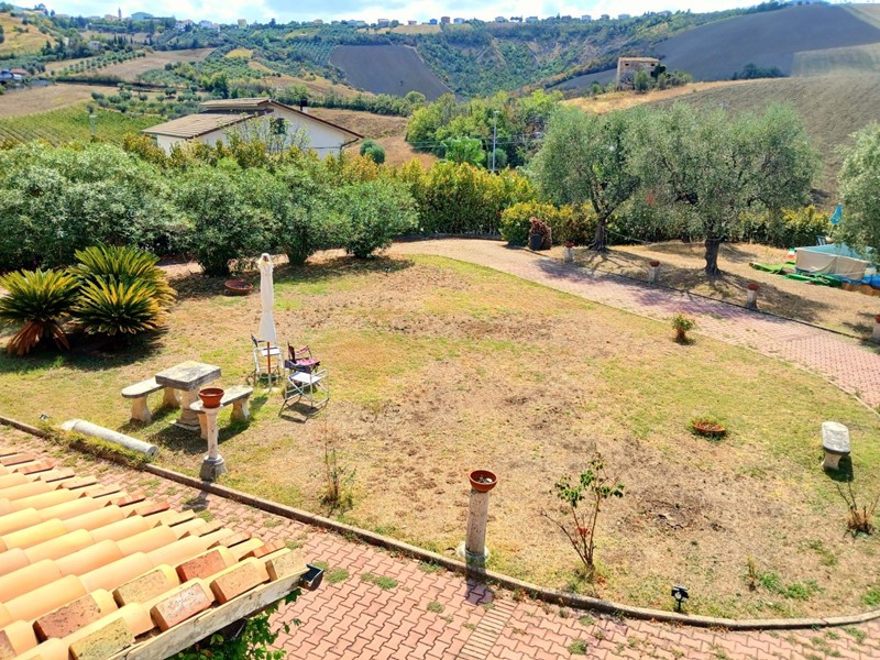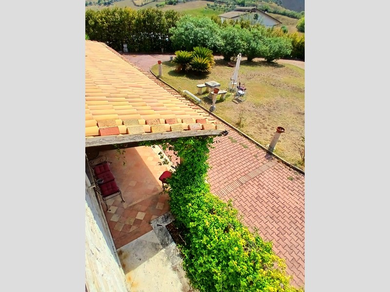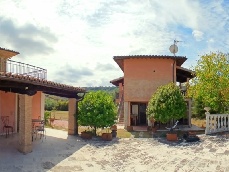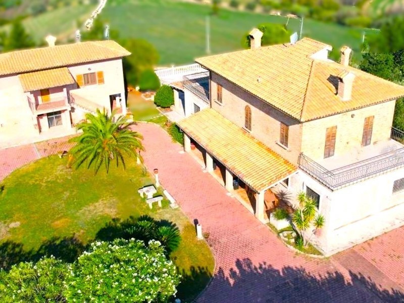 ELEGANTI RESIDENZE FRA COLLINE ABRUZZESI E MARCHIGIANE CON PANORAMA MOZZAFIATO - Nelle immediate vicinanze dei centri urbani, fra la tranquillità ed i profumi delle verdeggianti colline, meraviglioso complesso residenziale circondato da giardino, con possibilità di annettere ulteriore terreno agricolo. La proprietà è composta da una splendida Villa padronale e da una graziosa Dépendance ad essa vicina, che la rendono ideale sia quale residenza plurifamiliare che come struttura ricettiva. Il corpo principale, di circa mq 360 coperti e mq 180 di terrazzi, porticati e logge, è disposto su tre livelli. Al piano seminterrato sono alloggiate le cantine ed un ampio garage, che affacciano su una corte terrazzata con accesso da secondo cancello carrabile e panorama verso i Sibillini. Tutti i livelli sono collegati internamente da comoda scala ottimamente rifinita. Al piano terra vi è una sala da pranzo con camino e ingresso da portentoso ed incantevole porticato, un salotto con camino, una cucina abitabile con affaccio su splendido terrazzo con loggia, due camere ed un bagno. Il primo piano dispone di quattro camere da letto e due bagni, con affacci su due sorprendenti terrazze con vista sublime. L'edificio minore, di circa mq 87 coperti oltre mq 28 di logge, patii e porticati, ha destinazione magazzino seppur in parte rifinito ad abitazione, ha ingresso indipendente ed è disposto su due livelli. Al piano terra vi sono due ambienti da personalizzare ed un forno a legna outside mentre al piano superiore, raggiungibile tramite scala esterna, vi è un accogliente appartamento con tetto in legno a vista, composto da soggiorno con angolo cottura e camino con affaccio su terrazzino che guarda un angolo di giardino con gazebo, una camera da letto matrimoniale ed un bagno. Un'area recintata di 3215 mq circa circonda le residenze, piantumata e ad erba, con vari angoli di relax e svago. I fabbricati, seppur d'epoca, hanno subìto una ristrutturazione accurata utilizzando materiali antichi originali e di pregio: vi sono pavimenti in cotto del '700, cemento e graniglia del '900, rifiniture in travertino antico, porte in legno importanti, camini in pietra e mattoni di recupero. Possibilità di acquistare, con prezzo da computare a parte, terreno agricolo confinante di circa 3,3 ettari a seminativi arborei ed ulivi. Gli immobili sono abitati sporadicamente e non in maniera continuativa pertanto necessitano di manutenzione. Seppur immersa nella natura, la residenza ha accesso da strada asfaltata, è vicina ai centri urbani e dista solo 15 minuti di auto dalle spiagge dell'Adriatico. Rif. 67710 DiLeoImmobiliare
