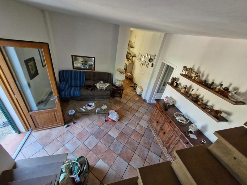 L’immobile disposto su due piani, è composto da soggiorno, cucina abitabile con accesso alla corte, disimpegno bagno e camera matrimoniale; a mezzo di scala interna si accede al piano primo composto da due camere matrimoniali, corridoio e bagno.