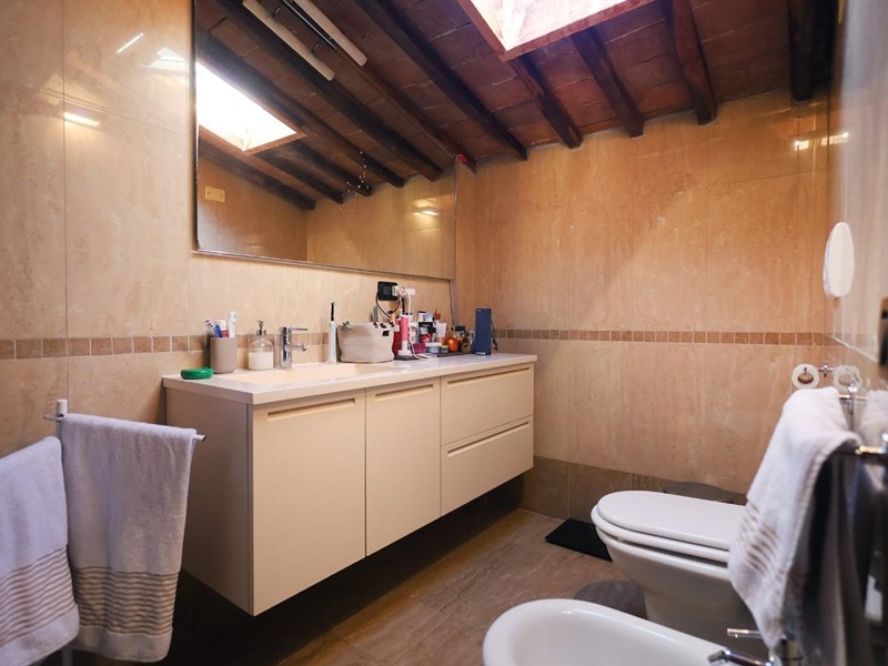 San Giuliano Terme: nel centro storico di SAN GIULIANO TERME - 'A due passi dal centro termale in ex convento del 1300, completamente ristrutturato recentemente in ogni sua parte, appartamento di 90 mq, disposto su due livelli al secondo ed ultimo piano, composto da ingresso in ampio salone, grande cucina, lavanderia/bagno di servizio; al piano superiore da ampio sottotetto diviso in due camere e bagno, ottime rifiniture con parquet, aria condizionata, travi e travicelli, compresi parte di arredi attuali (cucina e armadio a muro su misura); inoltre all'interno (chiuso da cancello automatico) di un parco condominiale di oltre 3000 mq. con ampio giardino e gazebo, due posti auto in proprietà esclusiva. '.