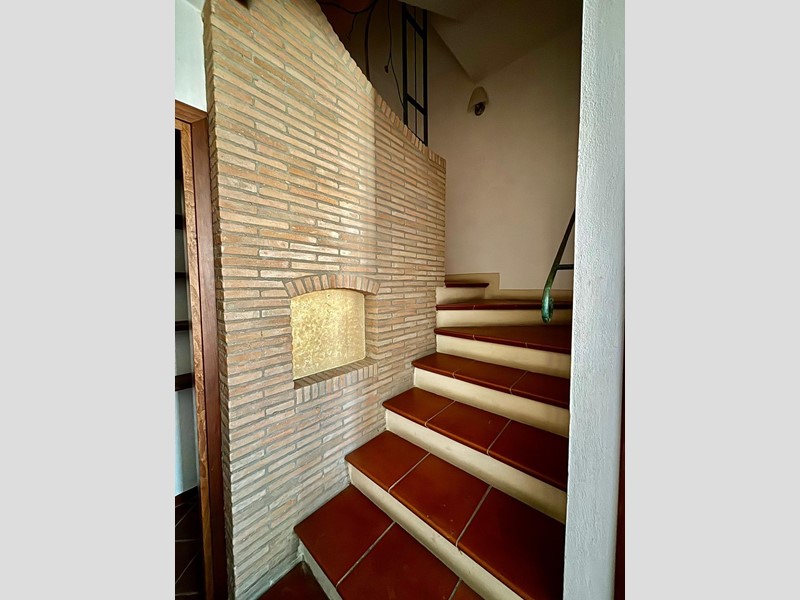 La villetta è rifinita con materiali di pregio, tra cui il pavimento in cotto.
