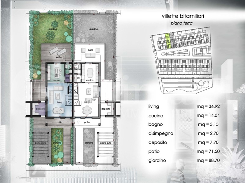 Le villette, progettate con un design contemporaneo, saranno dotate di giardini privati che offriranno uno spazio verde personale, perfetto per il relax e le attività all'aperto. In ogni giardino sarà presente un posto auto privato, per garantire praticità e sicurezza ai residenti. Inoltre, le villette disporranno di un rooftop, un ampio terrazzo panoramico ideale per cene all'aperto o per godersi la vista in totale tranquillità.