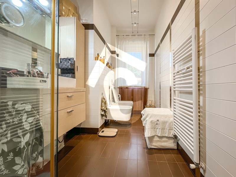 Il piano superiore, mansardato, comprende una sala relax attualmente adibita a studio, una cameretta, un bagno e una splendida terrazza soleggiata.