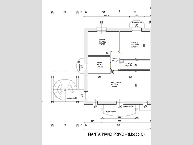 Al piano primo, ingresso indipendente, cucina abitabile e sala open space con balcone, bagno con balcone, camera da letto doppia, camera da letto matrimoniale con altro balcone, disimpegno e ripostiglio/ locale caldaia.