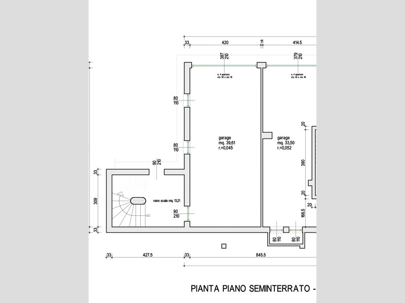 Tramite scala, accediamo al piano seminterrato con garage di 40 mq.