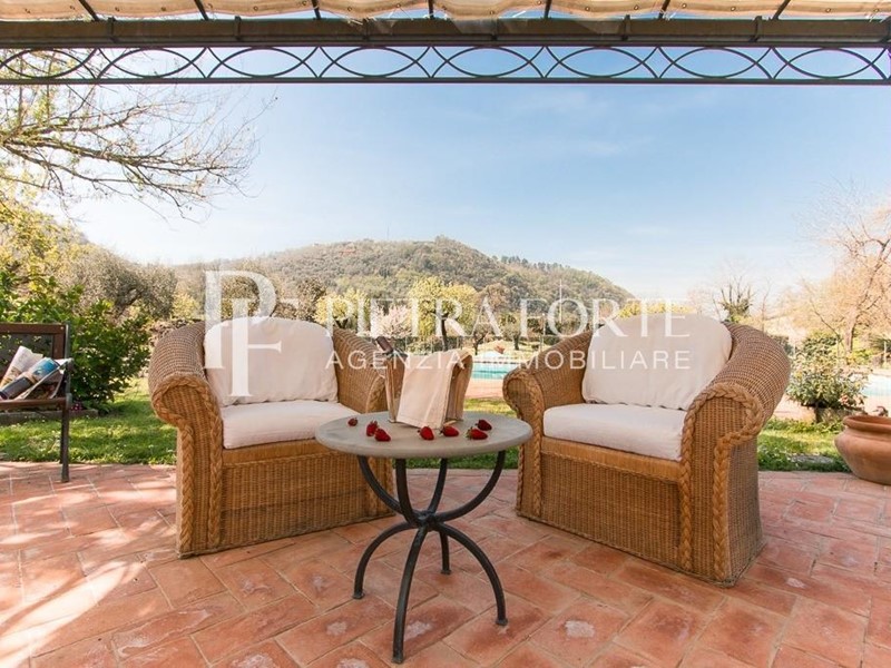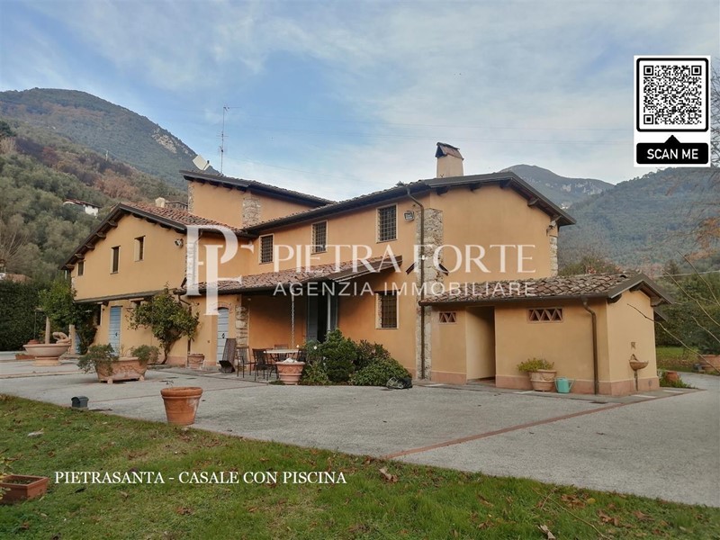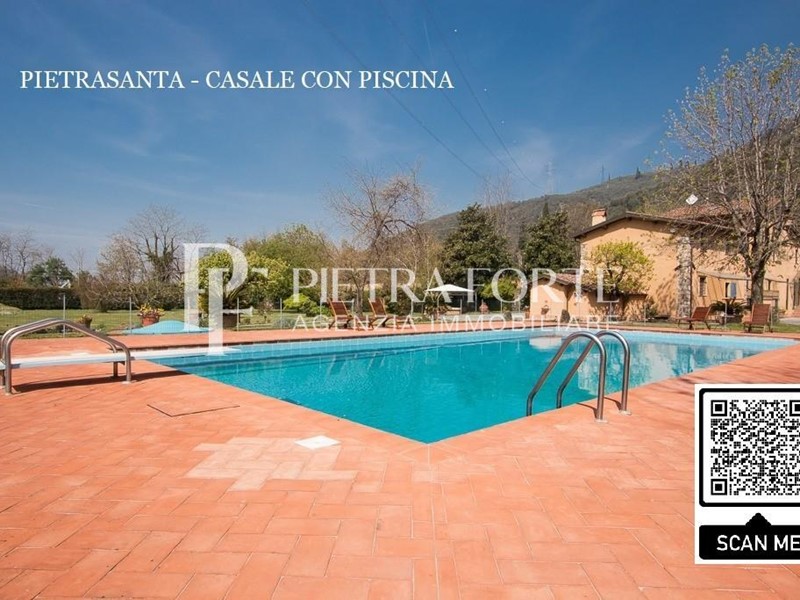 A solo 2 Km da Pietrasanta si trova un magnifico cascinale in una bellissima prima collina di 12000 Mq completamente pianeggiante con laghetto ed acqua sorgiva. La proprietà è costituita da un vecchio mulino del 700" di 470 mq, con ruota ancora funzionante, accuratamente restaurato nel 2004 in chiave contemporanea con materiali e finiture di pregio, dislocato su diversi livelli e composto da 6 camere da letto con sala da bagno en suite, 2 grandi saloni splendidamente arredati con preziosi caminetti, 3 cucine e altrettanti bagni di servizio, locale lavanderia e da alcune pertinenze, ambienti che ben si prestano ad essere suddivisi in appartamenti completamente indipendenti. Il podere è completato da una bella piscina di acqua dolce e da un campo da tennis in erba sintetica ed è raggiungibile in 5 minuti d'auto dal centro di Pietrasanta. La colonica è ubicata appena fuori dal centro storico di Pietrasanta, in primissima collina, sulla strada che conduce alla frazione di Valdicastello ed a pochi chilometri dalle località balneari della Versilia, come Forte dei Marmi, Marina di Pietrasanta e Viareggio e da città d'arte come Pisa e Lucca.