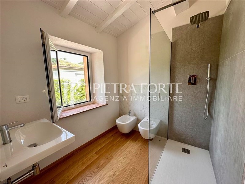 A soli 2 Km da Pietrasanta in una zona di campagna completamente soleggiata si trova un antico rustico dei primi del 900" completamente ristrutturato e recuperato con l'unico scopo di mantenere la sua unicità .Dove e' stato possibile sono state mantenute travi , mezzane e pavimenti originali. Il tutto completato da impianti di ultima generazione, sia per l’utilizzo dell’energia solare con i pannelli fotovoltaici, sia per il recupero delle acque per l’irrigazione del giardino, nell’ottica di una proiezione verso la bioedilizia. L’immobile, essendo in classe energetica A4, è un’abitazione che, dal punto di vista energetico, ho prestazioni elevatissime, puntando al risparmio e alla sostenibilità. Il rustico si sviluppa su due livelli per un totale di circa 143 mq. Al piano terra, troviamo l’ampia e luminosissima zona giorno con vetrate che affacciano sul giardino, angolo cottura, zona living dotata di un bel camino che dona subito calore all’atmosfera, un bagno e un locale tecnico. Salendo al primo piano, incontriamo uno spazioso disimpegno, pensato per la realizzazione di una zona armadi, due camere, una spaziosa camera matrimoniale di 14 mq e due bagni. Proprietà, completamente ristrutturata attraverso l’utilizzo di materiali naturali e innovativi