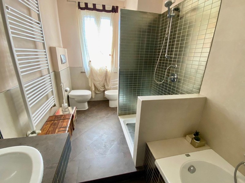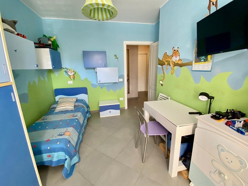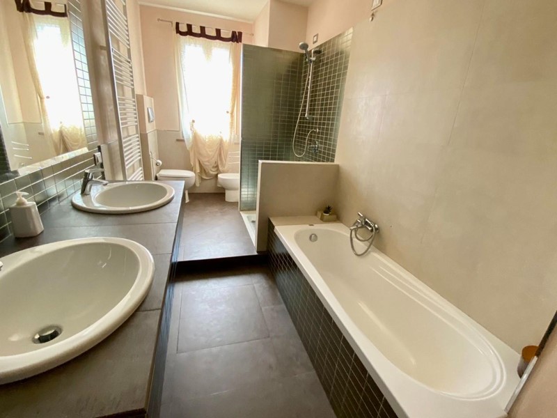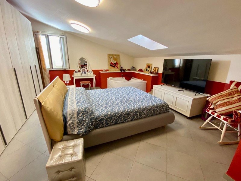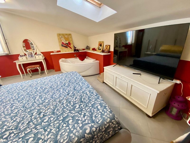 Al piano primo troviamo il reparto notte con la camera matrimoniale dotata di cabina armadio e bagno privato, una camera media con terrazzo ed un ampio bagno con doccia e vasca.