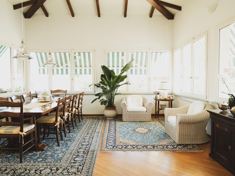 Uno spettacolare e ampio lucernaio sul tetto contribuisce ad illuminare al massimo rendendo la zona giorno davvero unica.