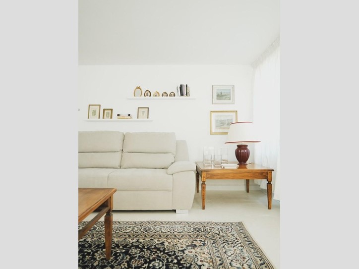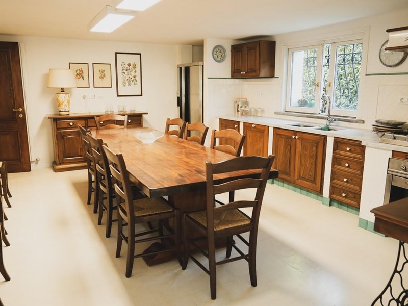 IL salone ci concede in open plan di vivere i vari ambienti, come la zona conversazione, la zona con tv con moderno camino e la comoda zona relax aperta verso un ampio soggiorno-pranzo, il tutto con vetrate e bellissimi affacci sul giardino; separata troviamo la cucina abitabile e la dispensa.