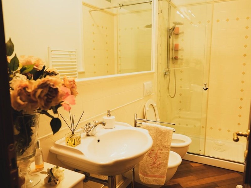Nella zona notte, troviamo grande camera matrimoniale con ampio bagno privato con doppio lavello e doccia tripla, altra camera e secondo bagno anch'esso caratterizzato da materiali di pregio.