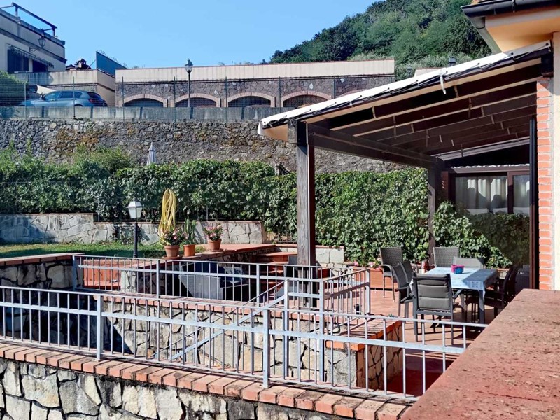 Ameglia - zona Cafaggio, in residence signorile appartamento con ingresso indipendente sito al primo piano e composto da ingresso in ampio soggiorno con angolo cottura e camino, due camere da letto matrimoniali più ulteriore camera nel sottotetto, doppi servizi. L'immobile è dotato di ampia zona esterna che comprende un'ampia veranda, una grande terrazza ed un giardino con zona barbeque e casottino attrezzi. Completa la proprietà l'uso di un garage e di un posto auto. Le spese delle utenze sono a carico del conduttore. Solo affitti transitori, libero da ottobre 2024.
