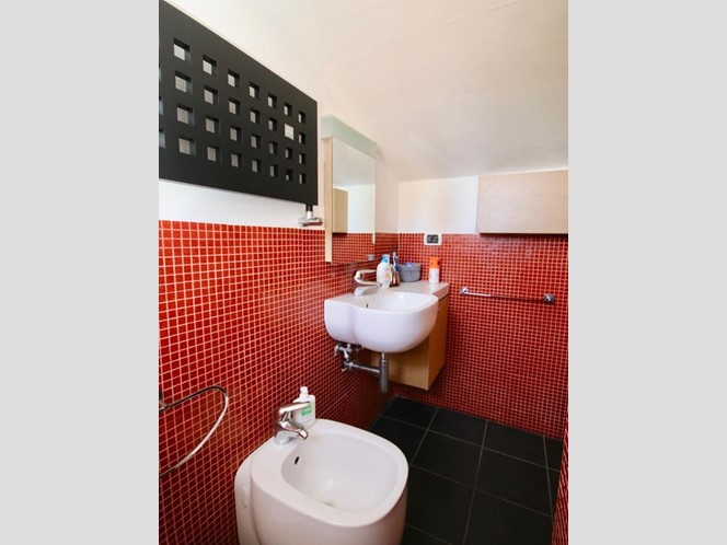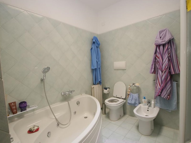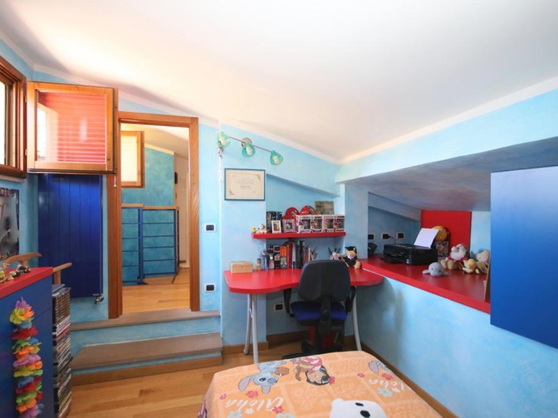 al piano primo troviamo il soggiorno con climatizzatore, tavolo da pranzo, divano e bel mobile in legno massello, cucina finemente arredata dotata di lavastoviglie; bagno con box doccia, vasca idromassaggio, lucernario e lavatrice, camera matrimoniale e cameretta; il secondo piano è composto da terza camera da letto con climatizzatore, bagno con box doccia e grande soffitta.