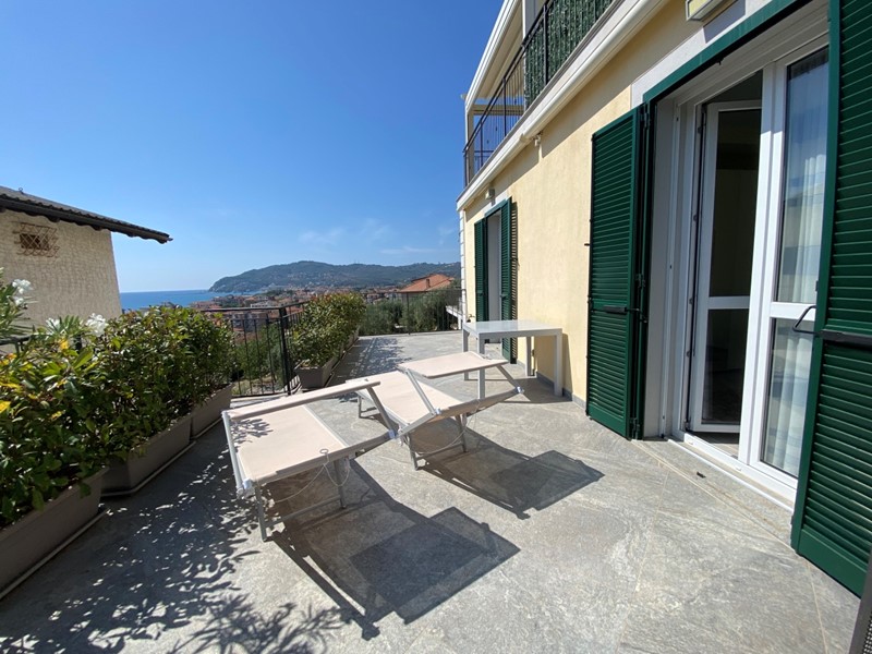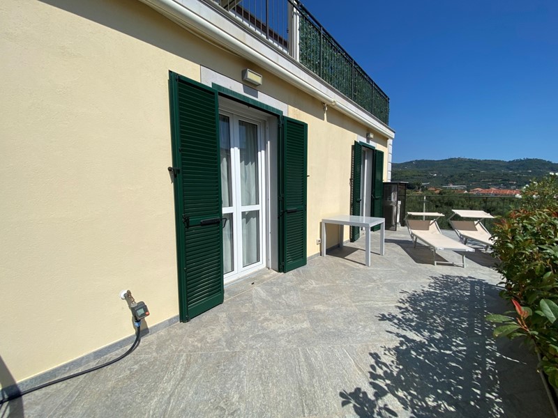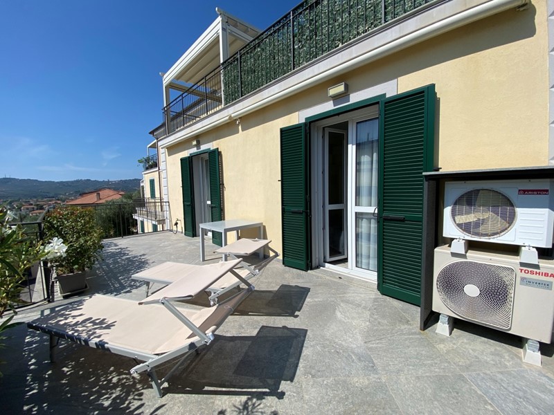 San Bartolomeo al Mare - a 600 mt dal mare in zona precollinare proponiamo in vendita in palazzina edificata nel 2020, alloggio posto al secondo piano con ascensore, esposto a sud-est composto da ingresso, soggiorno con angolo cottura, camera, bagno, ampio terrazzo. Terno autonomo con climatizzazione caldo/freddo. Pannelli solari. Vista mare e vista Cervo. Completa la proprietà un posto auto privato coperto.