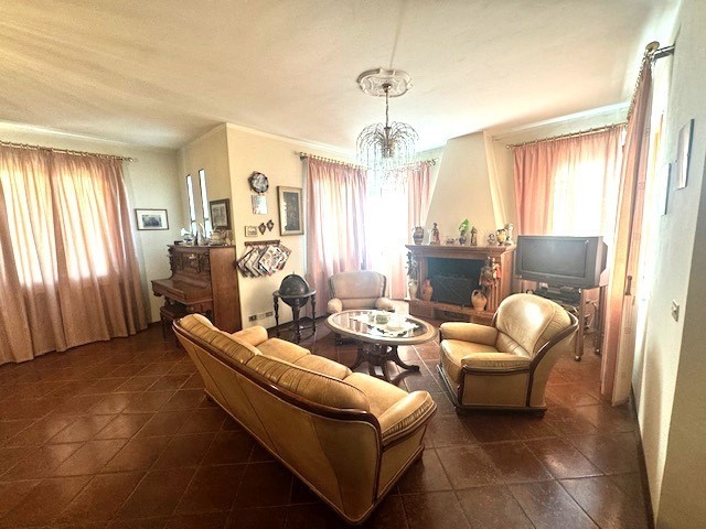 In strada secondaria e nel verde proponiamo in vendita villa libera su 4 lati con 3800 mq di giardino con alberi da frutto e ulivi. L'immobile si sviluppa su tre piani, salone doppio con camino, cucina abitabile, camera padronale con guardaroba e servizio al piano nobile, tre camere matrimoniali, salotto, giardino d'inverno, doppio servizio e lavanderia al piano primo con terrazza che si sviluppa su tutti e quattro i lati di circa 200 mq al piano primo, garage doppio, taverna, cantina e servizio al piano terreno. L'immobile è circondato da uno splendido giardino di 3800 mq con angolo barbecue e forno a legna con patio. L'immobile si presta ad una suddivisione in più unità immobiliari. Oggetto unico di ampie dimensioni, in buone condizioni, da rimodernare. Richiesta € 1.000.000,00 Trattabile.