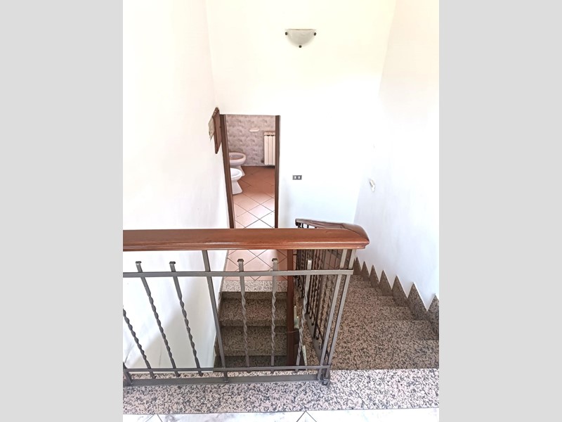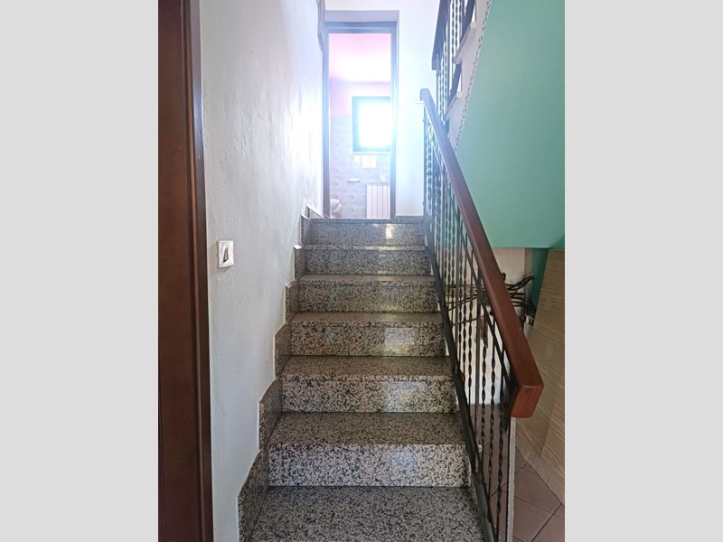 Salendo al piano intermedio, troverai un bagno con doccia e finestra, mentre al primo piano ti aspettano due grandi camere da letto. Una delle camere offre la possibilità di accedere a un terrazzo, ideale per rilassarsi all'aperto. La casa è completata da una grande cantina, due ripostigli esterni con locale tecnico, un garage e un magazzino di circa 60 mq.
