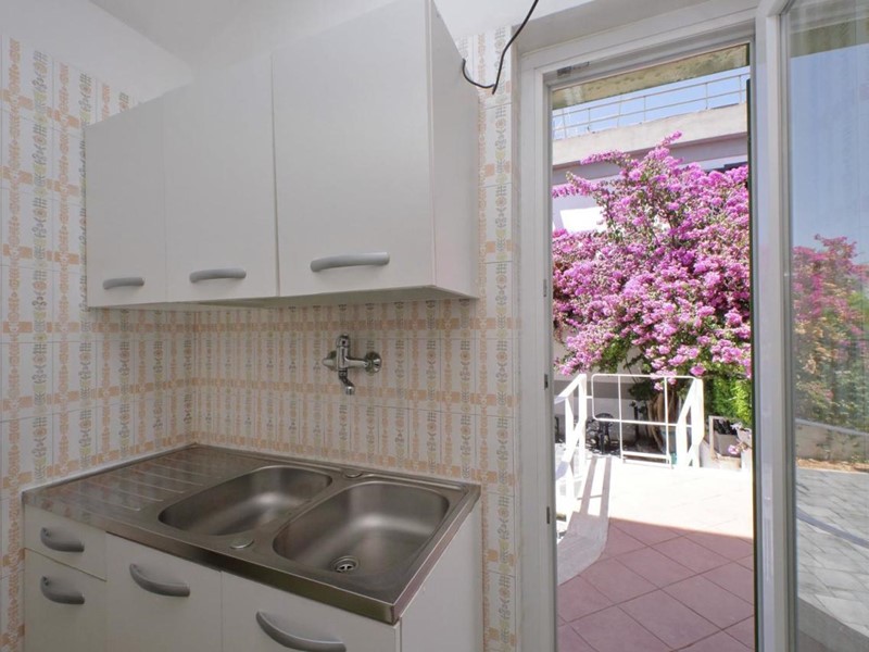 al P.T ( rialzato di 3 m dal giardino anteriore) di salone, cucina, bagno, e ripostiglio,