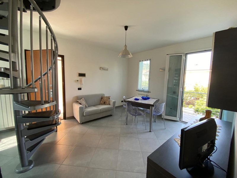 Diano Marina in via Colombera a 500 mt dal centro di Diano Marina, proponiamo in vendita in complesso di recente costruzione alloggio in posto al primo ed ultimo piano, disposto su 2 livelli così composto: P.1. ingresso in soggiorno con angolo cottura, camera, bagno (finestrato), balcone, al P.2 collegata con scala interna camera mansardata con ampio bagno (finestrato). Termo autonomo. Contenute spese condominiali. Completa la proprietà un box auto.
