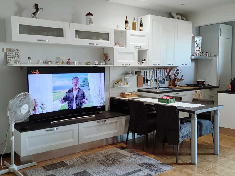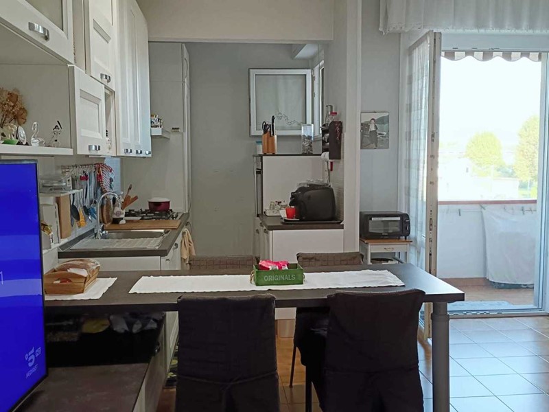 Luni Mare - in palazzina in ordine appartamento al secondo ed ultimo piano composto da ingresso in ampio soggiorno con angolo cottura e balcone con tenda elettrica, disimpegno di accesso alla zona notte con cameretta, camera matrimoniale e bagno. L'immobile è dotato di aria condizionata in ogni stanza, riscaldamento termoautonomo con caldaia a condensazione, infissi in pvc con doppi vetri e zanzariere, porte nuove ed è completamente arredato. Lastrico solare condominiale in uso e cantina di proprietà. Zona con vari parcheggi liberi.