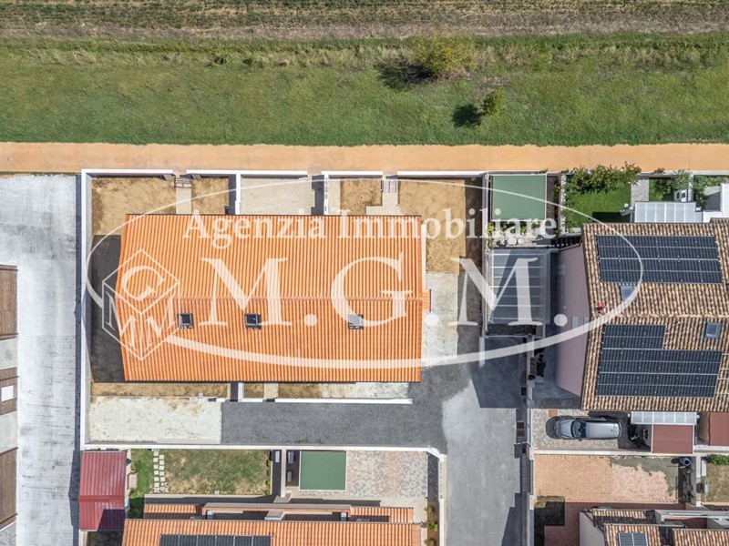 La villetta è dotata di riscaldamento a pavimento con sistema a pompa di calore di ultima generazione, impianto fotovoltaico da circa 2,5 kW, predisposizione per climatizzazione, allarme e addolcitore, sanitari sospesi, infissi esterni in alluminio e interni in PVC.