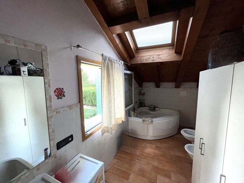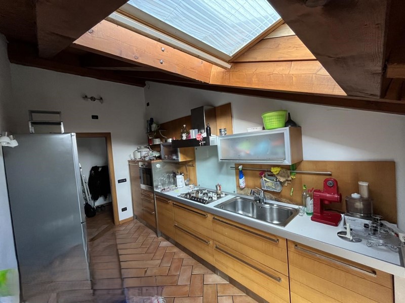 La soluzione si sviluppa al piano primo ed è caratterizzata da un ampio soggiorno di circa 50 mq con moderna scala aperta che porta ad un soppalco mansardato, cucina abitabile, tre camere da letto (due matrimoniali e una singola), due bagni finestrati con velux, lavanderia e un ripostiglio.