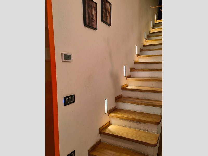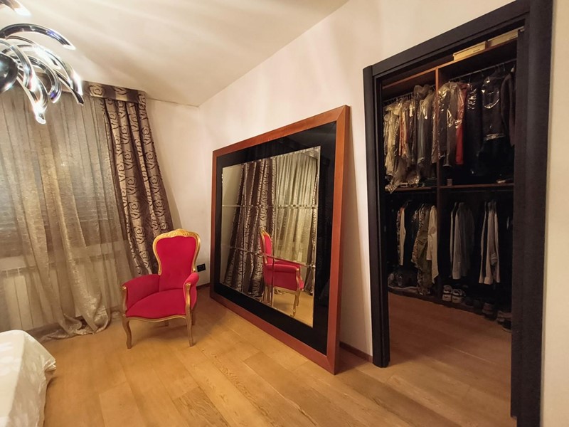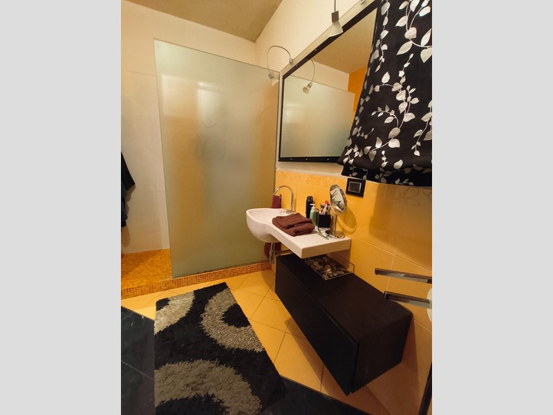 Dalla zona giorno dell'abitazione principale, tramite una scala interna a vista, si accede al primo piano dove si sviluppa il reparto notte, composto da una ampia camera padronale, una camera matrimoniale, una stanza guardaroba (utilizzabile anche come camera singola) e un ampio bagno finestrato con doccia.