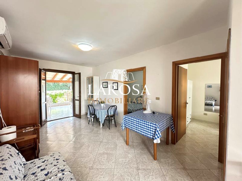 Larosa Immobiliare propone bellissimo appartamento al piano terra di circa 60 mq con spazioso giardino e patio, situato nella suggestiva marina di San Foca, a Melendugno, a pochi passi dal magnifico mare del Salento. Un luogo ideale per famiglie, coppie e chiunque cerchi un'oasi di relax. l'appartamento si trova all'interno dell'Eurogarden Village di San Foca, un sobrio resort stagionale alle porte del centro abitato, che offre una vasta gamma di servizi: spiaggia privata (Eurogarden Beach), piscina all'aperto, campi da tennis e calceto, teatro all'aperto con animazione, market, e molto altro. Il villaggio si trova all’ingresso ovest di San Foca, a circa 1,3 km dalla spiaggia privata Eurogarden Beach, raggiungibile anche con la navetta del villaggio. Inoltre, il centro di San Foca, ricco di negozi e attività turistiche e ristorative, è facilmente accessibile. L’appartamento è situato al piano terra di un complesso residenziale. Al lato dell’edificio si trova il parcheggio mentre nella zona ci sono molte aree verdi attrezzate. Dal cancello si accede al bellissimo giardino antistante con un' ampia veranda dove si può pranzare e cenare all’aperto. Dalla veranda si accede allo spazioso soggiorno/cucina open space con angolo cottura attrezzato. Dal Salotto cucina si ragiungono le due camere da letto e il bagno con servizi e doccia. La prima camera matrimoniale si affaccia sulla veranda antistante mentre la cameretta con due lettini si affaccia sulla zona retrostante della casa, entrambe provviste di grandi finestre. A lato della cameretta si trova il bagno con lavabo, servizi igienici, doccia e finestra. L’immobile presenta buone finiture, con portoncino d’ingresso in legno, infissi interni ed esterni in legno con vetrocamera, impianti in buono stato e funzionanti, è dotato di allacciamento alla rete idrica e fognaria del villaggio, scaldabagno elettrico per l'acqua sanitaria, impianto di riscaldamento/raffrescamento con condizionatore a parete, e impianto TV. Superficie abitazione: circa 60 mq. informazioni generali: L'immobile e' ubicato nella splendida marina di San Foca, comune di Melendugno (LE) situato nel Salento centroorientale a sud-est di Lecce, posizionato tra il capoluogo e Otranto, distanti rispettivamente 18 e 22 km, mentre il comune dista soli 6,5 km dal mare Adriatico e precisamente dalla splendida marina di San Foca. il comune include 6 frazioni (Borgagne e le 5 marine ubicate lungo la costa adriatica salentina, quali San Foca con il suo porto turistico e peschereccio, la sua torre di guardia, le sue spiagge di sabbia bianchissima, le scogliere a picco sul mare costellato di innumerevoli scogli e faraglioni di suggestiva bellezza; Sant'Andrea, con il suo faro e i suoi faraglioni; Torre Saracena con le sue struture ricettive; Torre Specchia Ruggeri con l’omonima torre di guardia, le sue piccole e grandi calette arricchite da spiagge di sabbia bianca finissima; Torre dell'Orso con la sua torre di guardia del 1568, la suggestiva spiaggia e gli scogli delle Due Sorelle; ed infine Roca Vecchia con la medesima torre di guardia, il suo santuario/cripta della Madonna delle grazie, l'area archeologica costituita da diverse fortificazioni dell'eta' del bronzo e la splendida grotta naturale della Poesia risalente al periodo dei Messapi. Tutta la zona è servita da innumerevoli servizi balneari e ristorativo/alberghieri, b&b e case vacanze.
