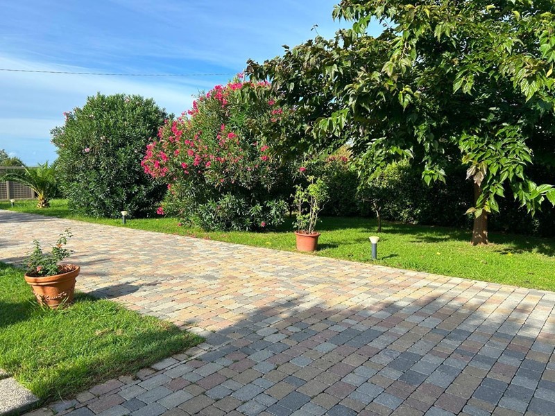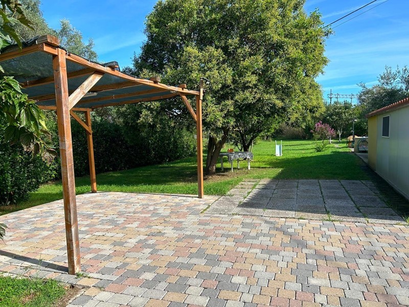 Proponiamo un terratetto d' angolo immerso in un giardino di 2000 mq. Soluzione unica nel suo genere: ingresso dall' ampio giardino con possibilita' di parcheggiare varie auto; l' abitazione si sviluppa su due livelli, piano terra cucina abitabile, soggiorno, camera matrimoniale, bagno completo con doccia e finestra. Al piano primo troviamo tre camere, di cui due matrimoniali e una singola spaziosa e il secondo bagno completo anch' esso con doccia e finestra. All' esterno ampia depandance ideale per feste, cene con amici e familiari, ulteriori annessi ad uso lavanderia, ricovero attrezzi. Gli spazi esterni sono stati ben disegnati in parte a verde e in parte piastrellati in modo da poter utilizzarli nel miglior modo possibile. Abitazione ideale per amanti degli animali, del verde e della tranquillita'.