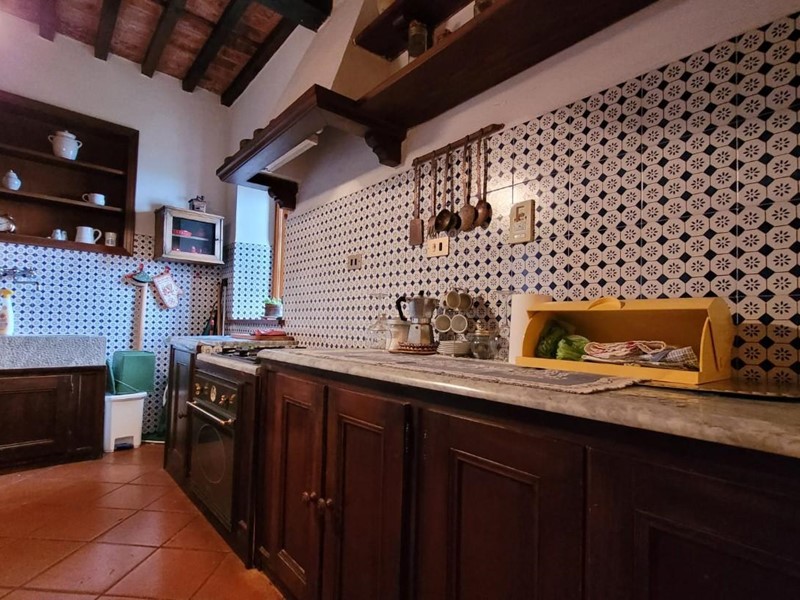 Chiatri - Proponiamo in vendita splendido rustico di 300 mq circa, libero su tre lati e completamente immerso nel verde. L'abitazione si sviluppa al primo piano e vi si accede tramite scala esterna, l'ingresso lo abbiamo in ampio living con camino funzionante, cucina abitabile e sala da pranzo, al secondo piano si sviluppa la zona notte dalla quale accediamo da bella scala in legno e dove troviamo quattro camere di cui due matrimoniali e due doppie e due bagni finestrati, uno con doccia e uno con vasca. Al piano terra invece troviamo la taverna con accesso sia dall'esterno che dall'interno dell'abitazione da una scala a chiocciola in legno, così composta: ampio salone con camino e forno a legna e angolo bar, cucina abitabile, cameretta singola e un bagno finestrato con doccia. Dal salone della taverna si ha accesso al giardino privato di 1000 mq circa, recintato e chiuso da cancello in legno. Le rifiniture sono le classiche toscane: infissi in legno con vetro semplice, scuri interni in legno, pavimentazione in cotto, soffitti in travi e travicelli a vista, termoautonomo con radiatori in ghisa e caldaia a gasolio. A corredo garage, cantina e due posti auto scoperti. Ulteriori informazioni in agenzia.