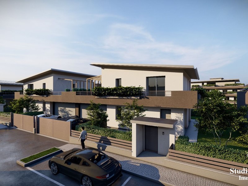 In vendita ESCLUSIVA, proponiamo complesso residenziale di NUOVA EDIFICAZIONE, composto da due minipalazzine di 6 famiglie ciascuna con APPARTAMENTI con GIARDINI o TERRAZZI e due VILLE indipendenti.\n\nIl complesso è caratterizzato da un progetto contemporaneo con elevata sensibilità all'impatto energetico mediante l'utilizzo di fonti energetiche rinnovabili, con particolare attenzione agli spazi e alla luminosità garantita dalle ampie vetrate. La possibilità di personalizzazione della disposizione interna e dei materiali di finitura, costituiscono la soluzione ideale per una casa su misura per ciascuna esigenza.\n\nLa palazzina sarà realizzata in classe energetica A3 con impianto di riscaldamento radiante a pavimento di ultima generazione alimentato da pompa di calore supportata da pannelli FOTOVOLTAICI, ventilazione meccanica controllata a doppio flusso con recuperatore di calore, impianto DOMOTICO di base con gestione da remoto che potrà essere implementato secondo specifiche esigenze.\nGli immobili verranno forniti di impianto aria condizionata (ove possibile canalizzata).\n\nLe finiture interne saranno interamente a scelta dell'acquirente secondo capitolato di alta qualità.\n\nAPPARTAMENTO 1 di 120mq OLTRE GIARDINO privato di 378mq e cantina inclusa nel prezzo and euro; 487.000,00\nAPPARTAMENTO 2 di 77mq OLTRE GIARDINO privato di 91mq e cantina inclusa nel prezzo and euro; 265.000,00\nAPPARTAMENTO 3 di 97mq OLTRE GIARDINO privato di 255mq e cantina inclusa nel prezzo and euro; 373.000,00\nAPPARTAMENTO 4 di 140mq OLTRE TERRAZZO di 77mq e cantina inclusa nel prezzo and euro; 503.000,00\nAPPARTAMENTO 5 di 122mq OLTRE TERRAZZO di 81mq e cantina inclusa nel prezzo and euro; 453.000,00\nAPPARTAMENTO 6 ATTICO di 165mq OLTRE TERRAZZO di 182mq e cantina inclusa nel prezzo and euro; 650.000,00\nVILLA A6 di 232mq OLTRE GIARDINO di 277mq e TERRAZZO di 88mq con cantina e box doppio in larghezza inclusi nel prezzo and euro; 781.000,00\nVILLA A7 di 232mq OLTRE GIARDINO di 277mq e TERRAZZO di 88mq con cantina e box doppio in larghezza inclusi nel prezzo and euro; 757.600,00\n\n\nAutorimesse doppie in larghezza and euro; 55.000,00.\n\nContattaci al 351.6353375 / 320.3045331 (anche via sms o whatsapp) per ulteriori info o per un appuntamento!!! Tutte le informazioni qui fornite sono da ritenersi puramente indicative e non costituiscono in alcun modo elemento contrattuale. I dati relativi alle superfici sono approssimative , non hanno valore contrattuale e non sono in alcun modo vincolanti nella trattativa di vendita. I beni vengono venduti o affittati a corpo e non a misura. - Maggiori Dettagli: Porta blindata, Ventilazione meccanica, Tapparelle in alluminio motorizzate, Doppi vetri, Videocitofono , Tapparelle, Riscaldamento a pavimento